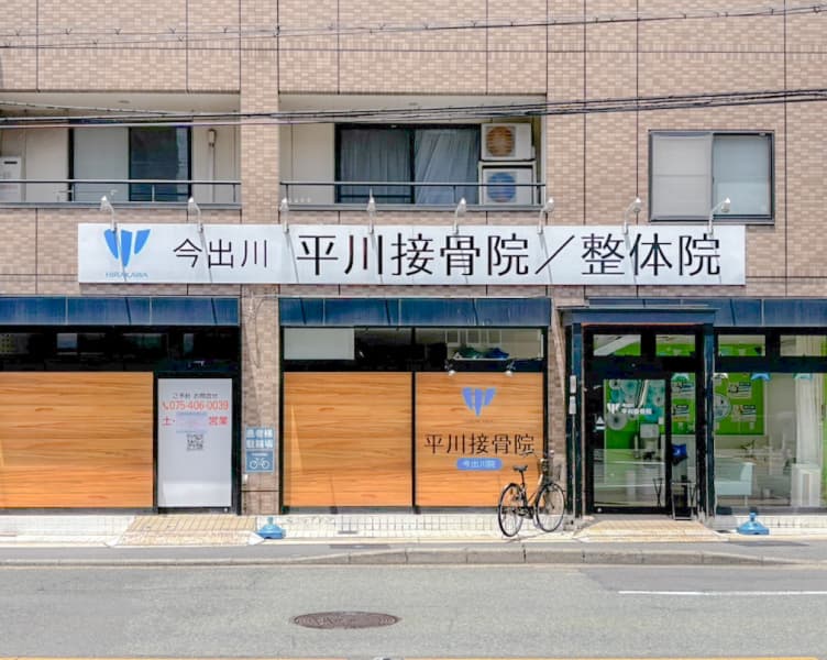 平川接骨院グループ 今出川院は、 上京区役所から徒歩2分。水色のロゴマークの看板が目印です。