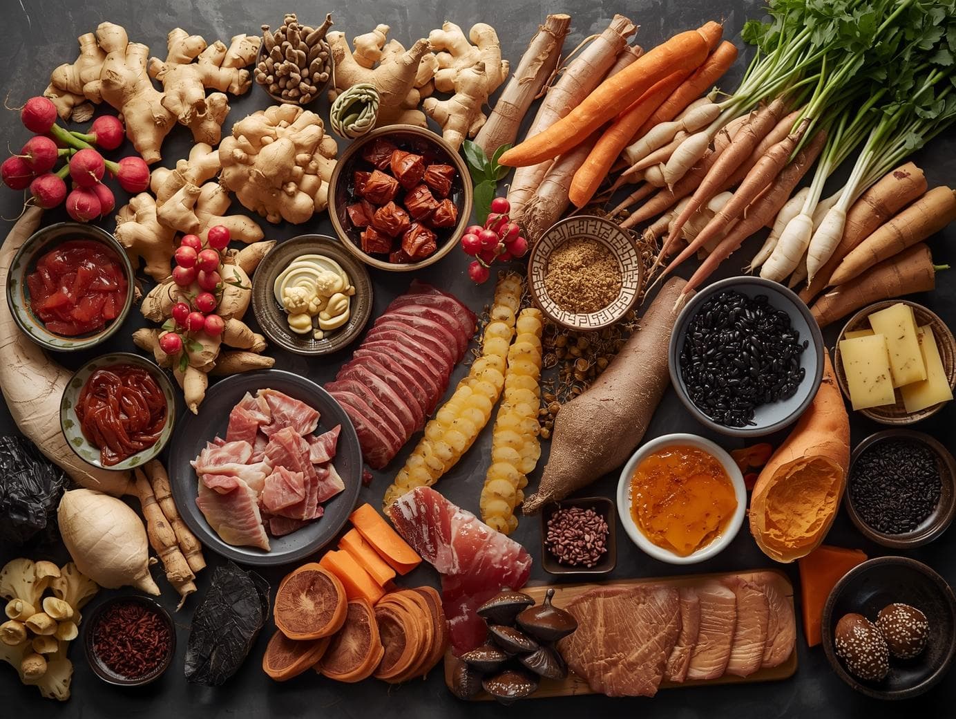 ・体を温めるOK食材 → 生姜、根菜、発酵食品、肉類、黒色食材