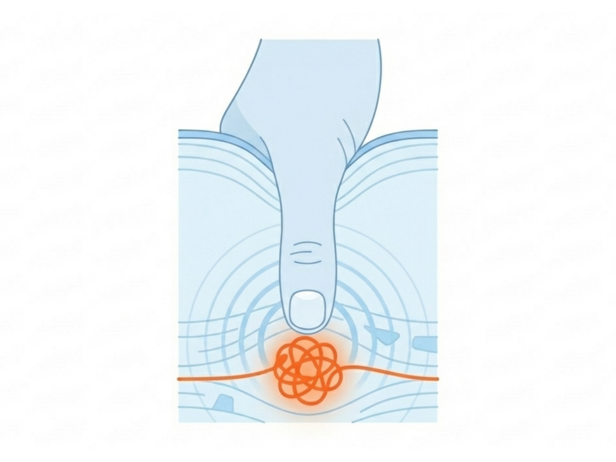 この状態が続くと、筋肉の中に“しこり(トリガーポイント)”ができやすくなります。