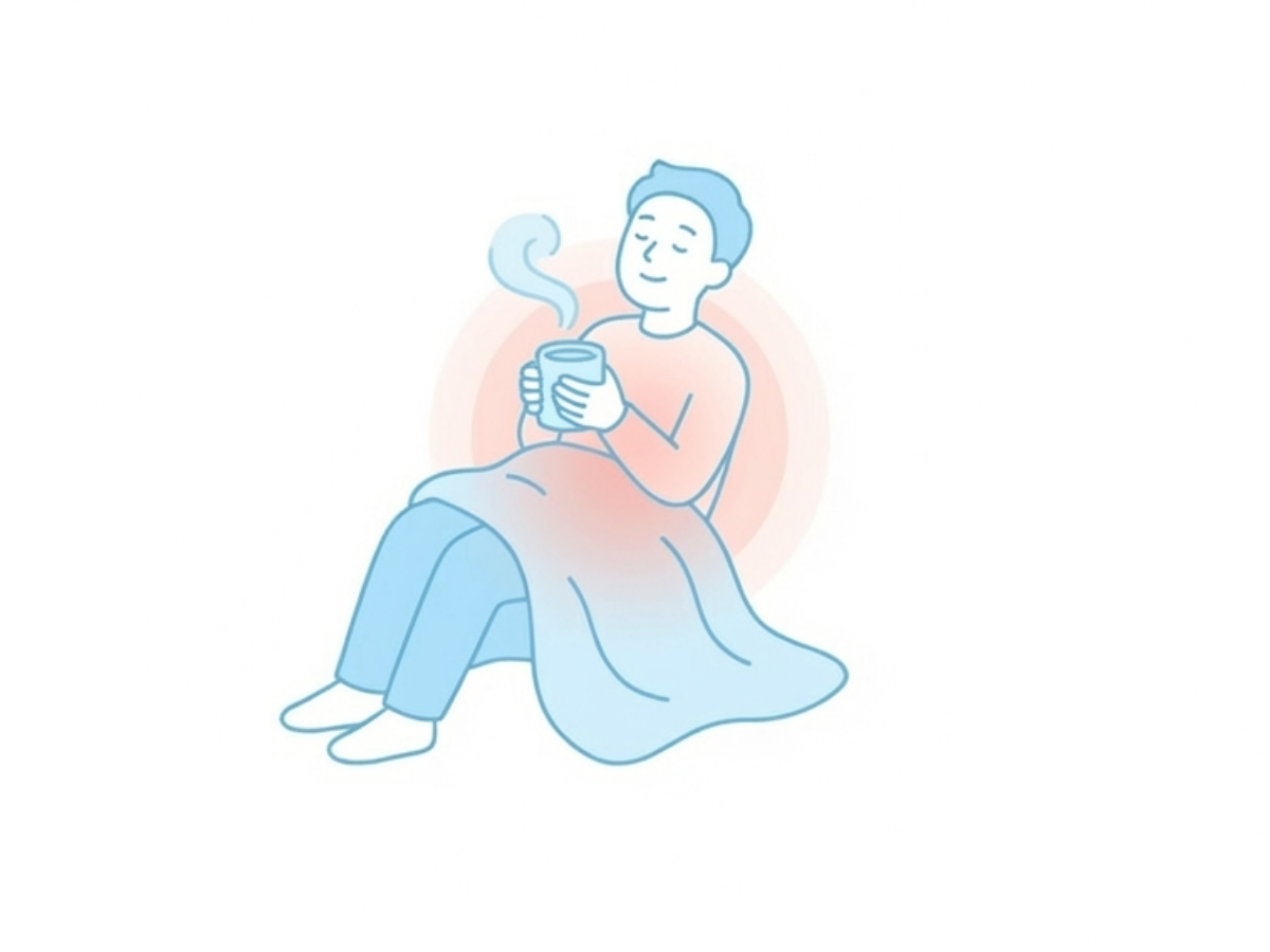 特に腰・お腹・足元を温めることで、血流低下を防ぎます。